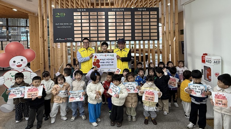 이번 기부금은 하늘빛어린이집이 지난달 30일 사랑의 바자회를 열고, 원생과 학부모, 지역사회 소상공인이 참여한 가운데 의류·생활용품 등 다양한 물품을 판매하고 얻은 수익금 전액이다.