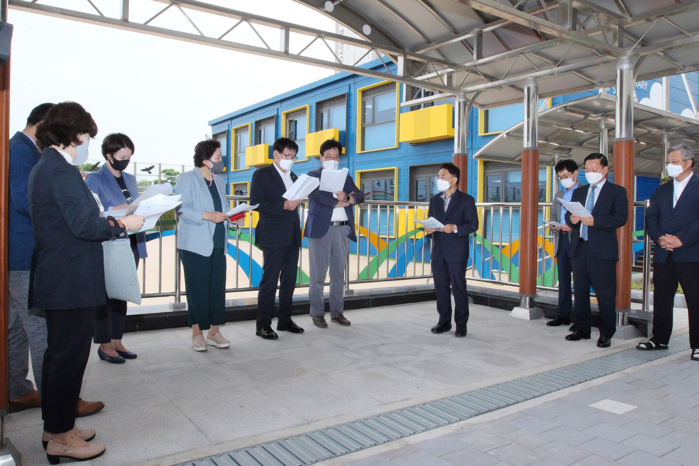 교육위원회는 명원초와 더불어 모듈러 교실 설치를 계획중인 오션초와 명지초도 방문하여 학생과밀현황 및 설치계획 등을 점검했다. 이순영 위원장은 “모듈러 교실이 기존 컨테이너 건물보다 안정성, 내진, 단열성능 등이 뛰어나다고 하지만 과밀해소를 위한 단기적 대안에 불과한 만큼 부산시교육청과 함께 학생과밀 문제 해결을 위한 근본적인 대책 마련에 적극 나서겠다”며 “또한, 많은 학부모가 학습환경 및 화재위험 등의 안전문제를 우려하고 있는 상황으로, 학생들의 학습권 보장 및 안전 확보 문제도 세심하게 살피도록 하겠다”고 말했다.