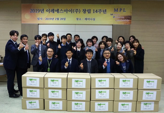 이레에스아이(주)는 창립 14주년을 맞이해 굿네이버스 경기구리남양주지부에 후원금 200만원을 전달했으며 지역사회 내 저소득가정을 위한 봉사활동을 함께 진행하였다. 이번에 진행된 봉사활동은 ‘행복을 전하는 나눔상자’를 제작하는 활동으로 상자 안에는 저소득 가정 아동들을 위한 각종 식료품과 생필품을 담았다.