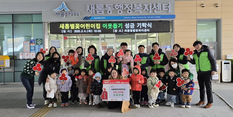 김지원 새롬동장은 “정성껏 모은 성금을 기부해 주신 어린이집과 교회에 감사드린다”며 “앞으로도 도움이 필요한 복지위기가구를 찾아서 적극 지원할 수 있도록 최선을 다하겠다”고 말했다.