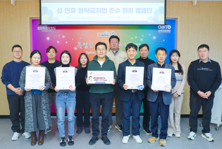[강원도 세계타임즈=김민석 기자] 강원관광재단(대표이사 최성현)은 지난 9일 설 명절을 앞두고 공직사회의 청렴 문화 확산과 청탁금지법 준수 의식 제고를 위해 청탁금지법 준수 청렴 캠페인을 실시했다.
