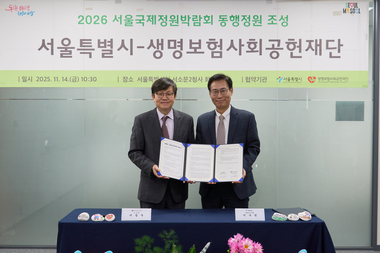 [서울 세계타임즈=이장성 기자] 서울시는 생명보험사회공헌재단과 11월 14일 업무협약을 맺고 2026년 서울숲에서 개최되는 서울국제정원박람회에 동행정원을 조성한다고 밝혔다. 이로써 내년 서울숲에서는 ‘마음의 전화’를 갖춘 ‘마음정원’을 만나볼 수 있게 된다.