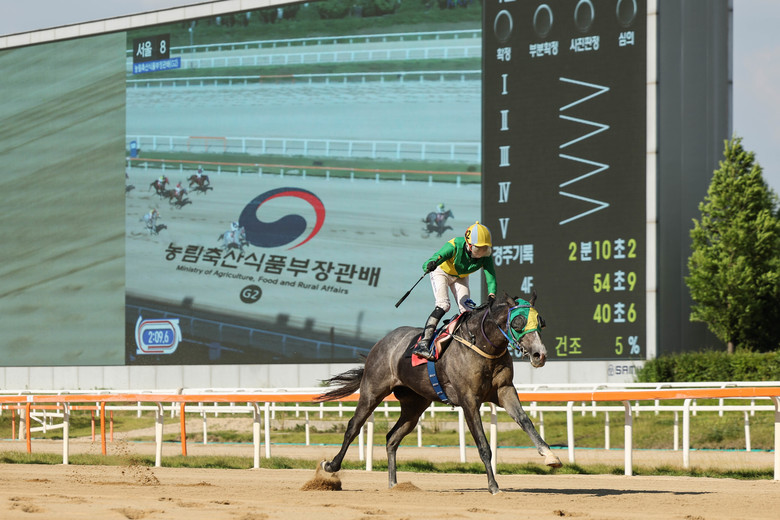[세계타임즈 = 송민수 기자] 6월 16일(일) 한국마사회(회장 정기환) 렛츠런파크 서울 제8경주로 펼쳐진 제24회 농림축산식품부장관배(G2, 2000미터, 순위상금 7억원)에서 ‘석세스백파’(한국 3세 수 회색)가 우승했다. 이종훈 마주는 2018년 ‘월드선’에 이은 두 번째 장관배 우승, 민장기 조교사는 첫 장관배 우승, 유현명 기수는 2021년 ‘히트예감’에 이은 두 번째 장관배 우승이다.