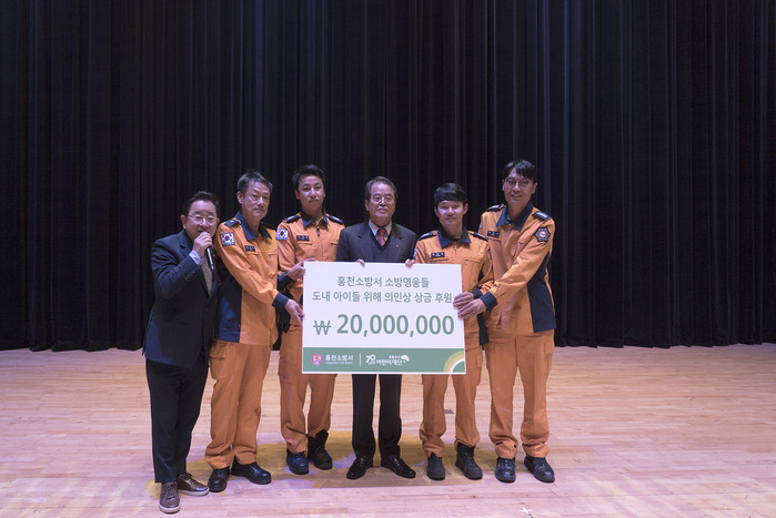 [강원도=세계타임즈 김민석 기자] 초록우산 어린이재단 강원지역본부(본부장 이창수)는 화재 현장 속에서 3세 어린이를 구한 홍천소방서 소방관들이 도내 아동 지원을 위해 의인상 상금 2,000만 원을 후원했다고 밝혔다.