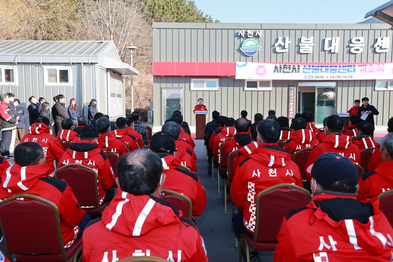 사천시는 지난 13일 산불 발생 시 신속하고 체계적인 초동대응을 강화하고, 산불진화대원의 근무환경 개선을 위해 ‘사천시 산불대응센터 개소식’을 개최했다.