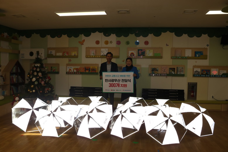 반사광 우산은 반사 기능을 통해 운전자의 가시성을 높일 수 있도록 제작, 야간이나 비가올 때 사용하면 어린이 보행 안전 확보에 큰 도움이 될 것으로 기대된다.