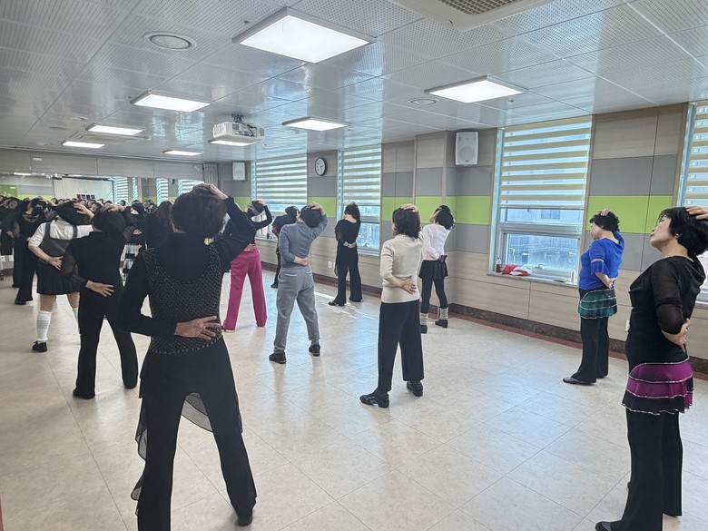 | ▲ 연향건강생활지원센터에서 운영중인 라인댄스 프로그램에 참여한 시민들이 준비운동을 하고 있다 |