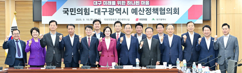 이번 예산정책협의회는 김정기 대구광역시장 권한대행 행정부시장과 이인선 국민의힘 대구광역시당 위원장을 비롯한 지역 국회의원들이 모두 참석해, 대구의 미래 성장기반 확보를 위한 협력 의지를 다지는 자리가 됐다.