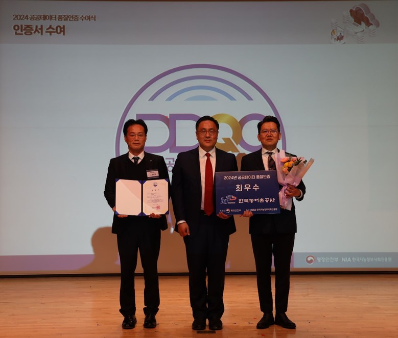 [세계타임즈 = 이영진 기자] 한국농어촌공사는 지난 28일 행정안전부가 행정·공공기관을 대상으로 실시한 ‘2024년도 공공데이터 품질인증’ 심사에서 최고등급인 최우수등급을 획득했다고 밝혔다.