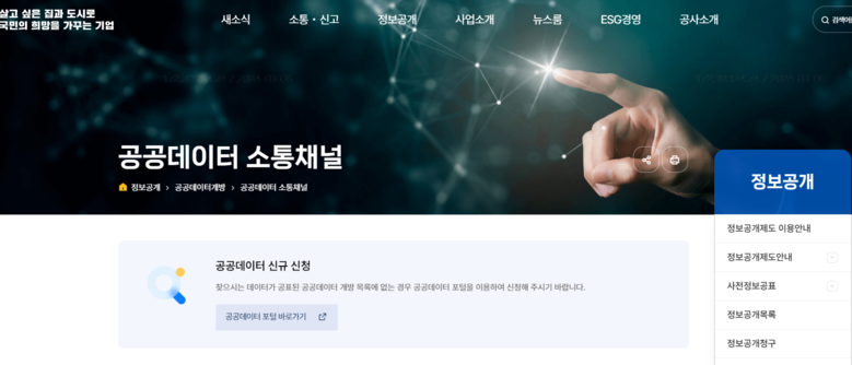 LH는 민간 활용도가 높은 분양‧임대 정보 및 3기 신도시 사전청약 정보 등 총 263건의 다양한 고품질 공공데이터를 개방하고 있다. 아울러 LH 홈페이지에 공공데이터 개방 및 활용 증진을 위한 소통 채널을 마련해 운영하고 있다.