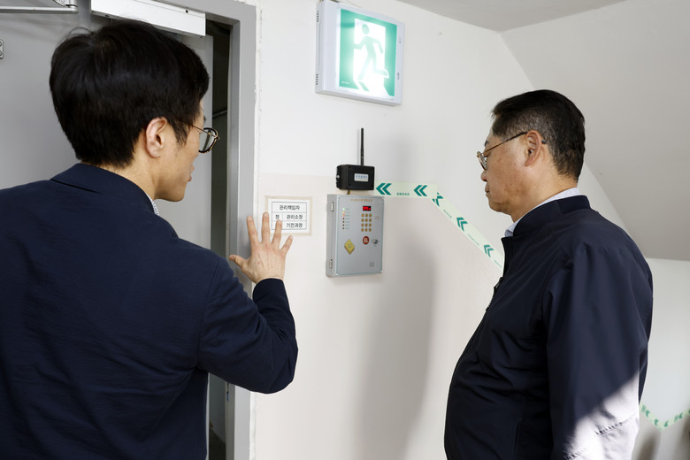 점검단은 ▲ 배수로 준설 상태 ▲ 기계실 침수 예방 설비 ▲ 방화문 폐쇄 여부 ▲ 옥상 출입문 자동 개폐 장치 작동 ▲ 피난 유도선 설치 상태 등 화재 및 풍수해 대비 시설을 면밀히 점검했다.