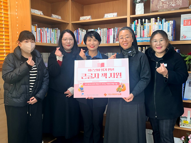 먼저 수정노인종합복지관에는 시력이 저하된 어르신들도 편안하게 독서를 즐길 수 있도록 큰글자책 300권을 지원한다.
