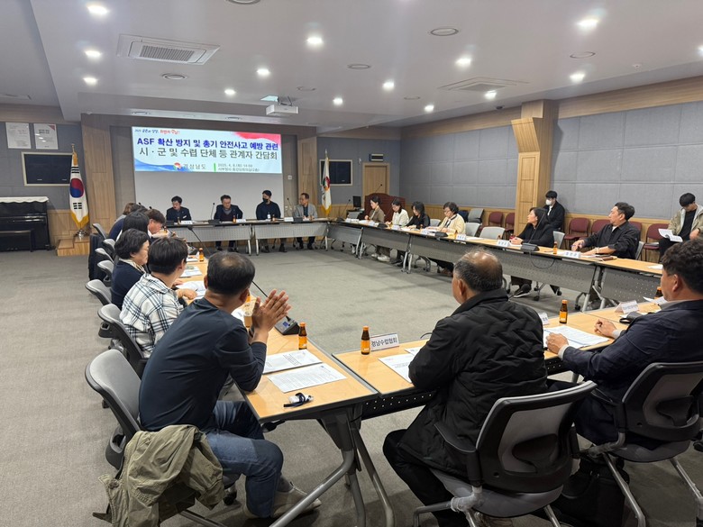 - 안전한 피해 예방 활동을 위한 제도 개선 방안 논의 [세계타임즈=경남 최성룡 기자] 경상남도(도지사 박완수)는 8일 오후 2시 경상남도 서부청사 중강당회의실에서 아프리카돼지열병(ASF) 확산 차단에 필요한 대응 능력 강화와 총기 안전사고 예방을 위한 간담회를 개최했다고 밝혔다.