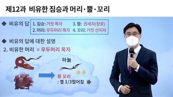 소 강사는 "하늘 장막에 있던 하나님의 목자와 성도들이 배도하게 되니 바다에서 짐승이 올라오게 되는데 그 짐승은 바로 일곱 머리 열뿔 짐승"이라며 짐승이 등장한 배경을 전했다.