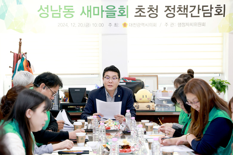 [대전 세계타임즈=이채봉 기자] 대전시의회 행정자치위원회 정명국 의원(국민의힘, 동구 3)은 20일(금) 10시 대전광역시의회 행정자치위원장실에서 성남동 새마을회를 초청, 정책간담회를 개최했다.