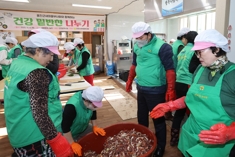 [옹진군 세계타임즈=심하린 기자] 인천옹진군새마을부녀회(회장 지정란)는 4일, 영흥면 행복나눔터에서 ‘따뜻한 겨울, 건강 밑반찬 나누기’ 행사를 개최하며 지역 이웃들에게 따뜻한 온정을 전했다.