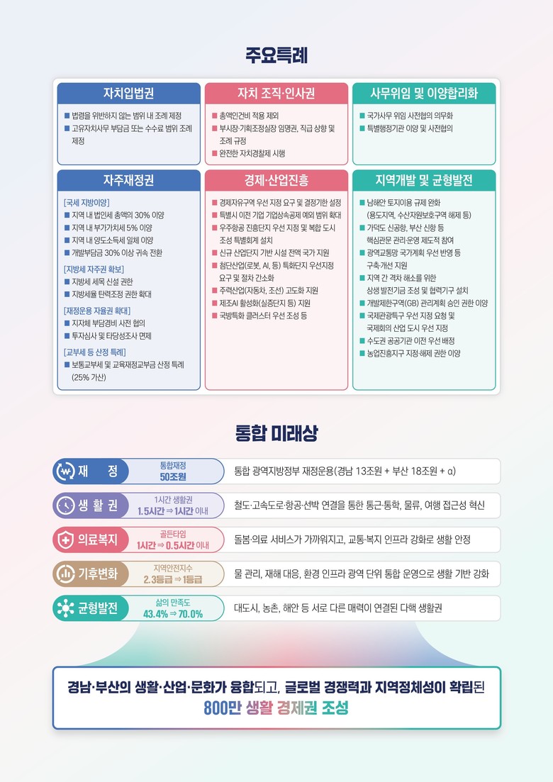 | ▲ 행정통합 발전전략 및 전략지도, 주요특례, 미래상 |