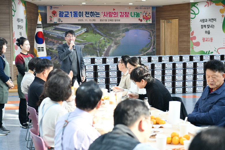 송숙영 광교1동장은 “이른 아침부터 김장 나눔 행사에 동참해주신 단체원 여러분께 진심으로 감사드리며, 이번 나눔이 어려운 이웃들에게 작게나마 따뜻한 온기로 전해져 추운 겨울을 행복하게 보내시길 바란다”고 전했다.