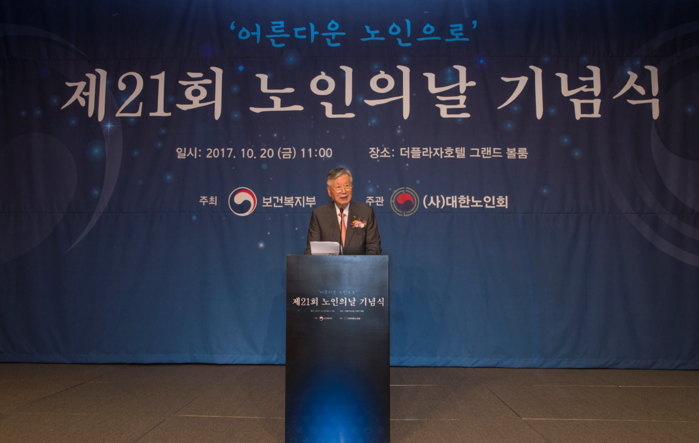박능후 보건복지부 장관은 기념사를 통해 "기초연금 인상, 기초생활보장제도 개편 등을 통해 노후 소득 보장을 강화해 나가겠다"고 밝혔다.