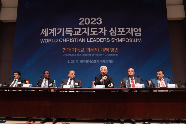 [세계타임즈 = 백진욱 기자] 한국프레스센터 국제회의장에서 '현대 기독교의 과제와 개혁 방안'을 주제로 한 '2023 세계기독교지도자 심포지엄'이 열렸다.