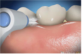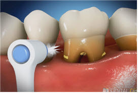 | ▲ 잇몸 수술을 받은 경우에 잇몸의 염증이 제거되고 잇몸이 회복하면 그림에서처럼 잇몸이 내려가고 치아의 뿌리가 노출된다. 노출된 치아 뿌리 사이로 음식물이 껴서 염증이 재발되지 않게 하려면 치간칫솔로 사이사이 청소해 줘야 한다. |