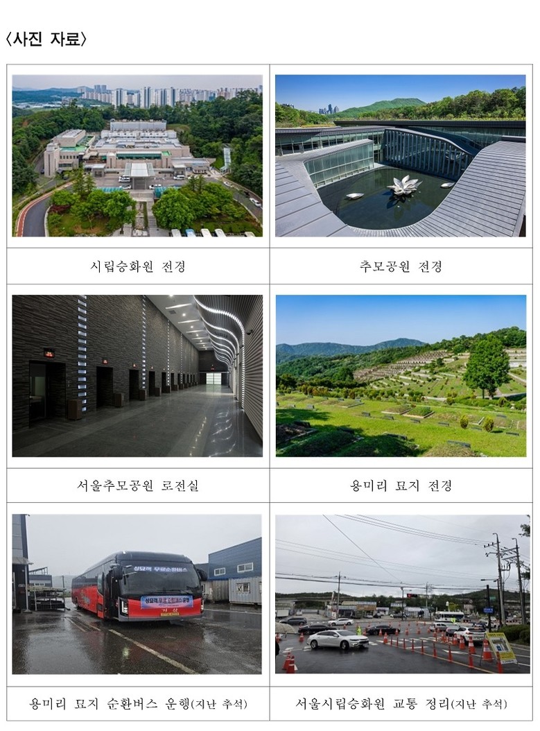 한편, 서울시는 설 명절 연휴 기간에도 서울시립승화원과 서울추모공원, 용미리‧벽제리 묘지 등 시립 장사시설을 정상 운영하고, 유족과 성묘객의 편의를 위해 교통안내, 무료 순환버스 운행 등 다양한 지원을 실시할 예정이다.