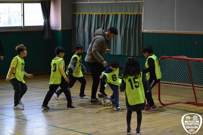 [세계타임즈 김인수 기자] 5일 아산무궁화프로축구단의 김동진, 김륜도, 최봉진과 온양초등학교(이하 온양초) 4학년에 재학 중인 18명의 학생이 비타민스쿨에 참가했다.
