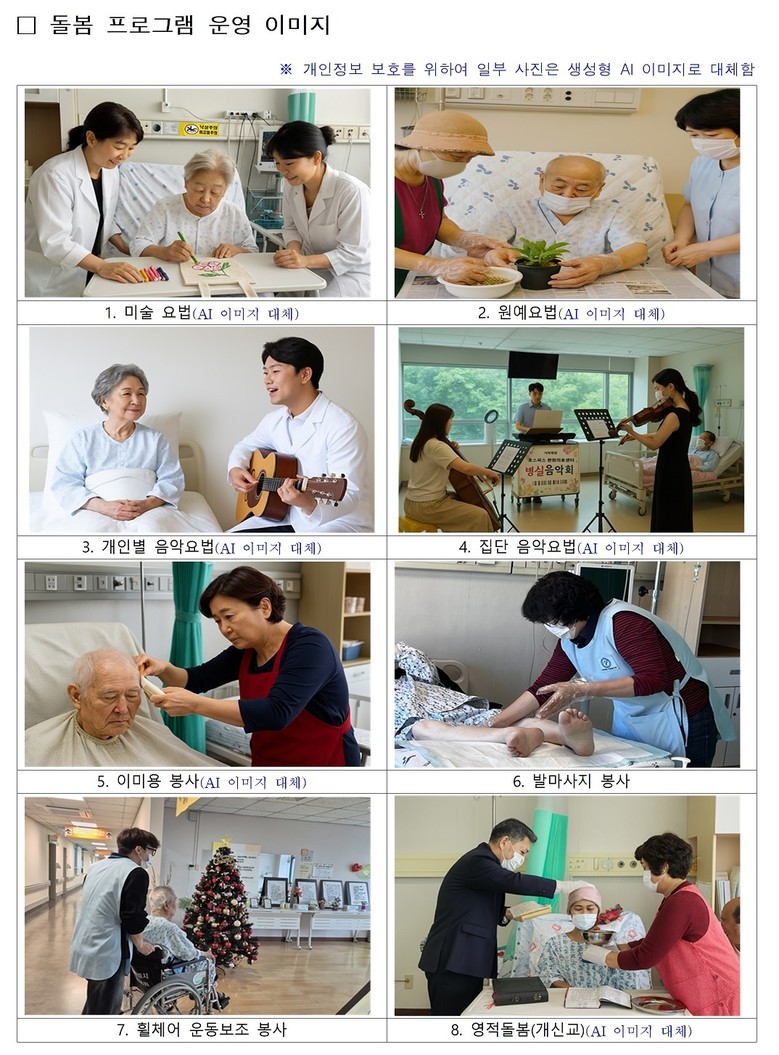 - 통증관리, 요양 간병 비롯해 생일파티, 작품전시, 가족 음악회 등 정서지원 프로그램도