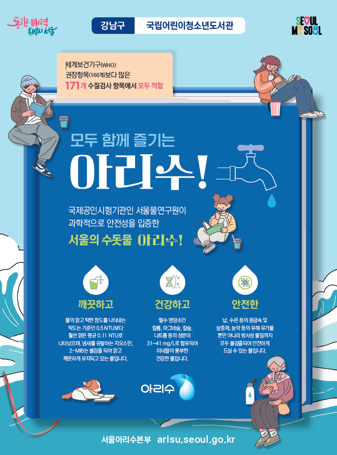 이번 정밀수질검사 결과는 해당 도서관 현장에 포스터 형태로 부착해 아리수의 수질을 확인할 수 있도록 했으며, 서울아리수본부 누리집(https://arisu.seoul.go.kr)에도 자치구별 결과를 게재해 정보 접근성과 투명성을 높였다.