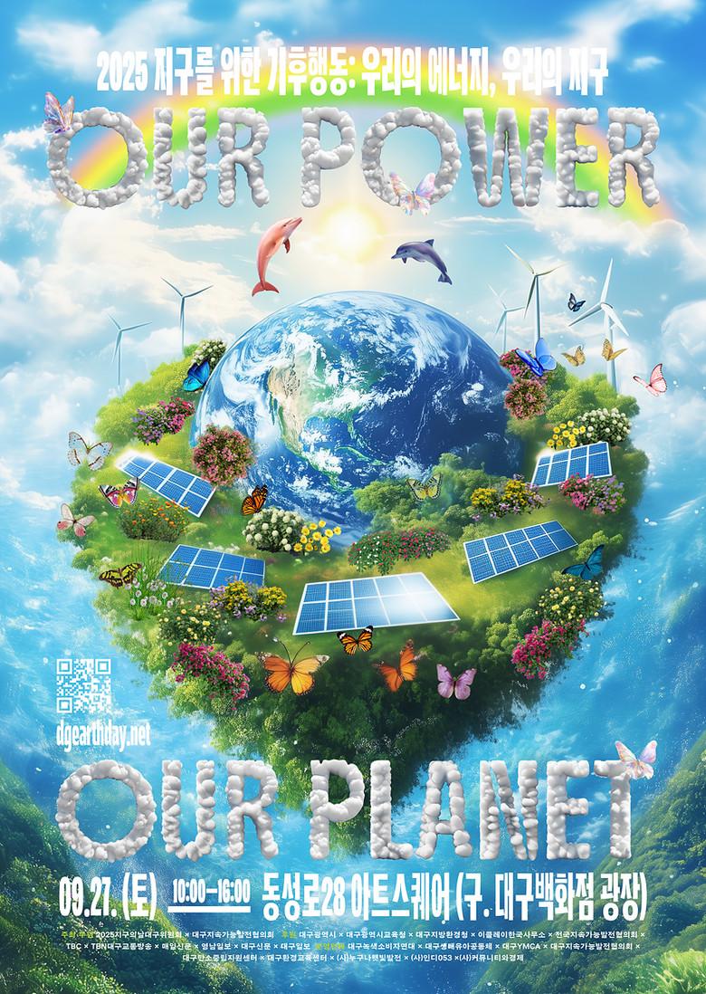 동성로 행사 현장에는 ‘OUR POWER, OUR PLANET’ 주제관이 설치돼, 시민들이 지역 기반 에너지 자립 사례인 시민햇빛발전협동조합과 에너지 전환 사례를 직접 보고 체험할 수 있을 예정이다.