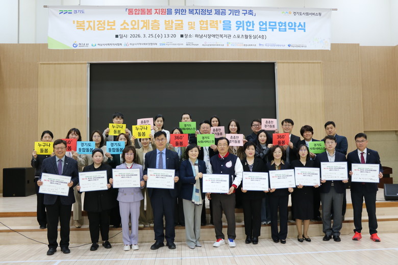이날 협약식에는 경기도의회 보건복지위원회 윤태길 의원(국민의힘,하남1)을 비롯해 경기도사회서비스원 안혜영 원장, 하남시 이현재 시장 및 유관기관 기관장 등 25여 명이 참석했다.