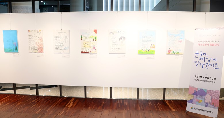 [충남 세계타임즈=이현진 기자] 충남도의회(의장 홍성현)는 9월 1일부터 30일까지 도의회 1층 ‘다움아트홀’에서 ‘역대 충남 성인문해교육 시화전 수상작 특별전’을 개최한다.