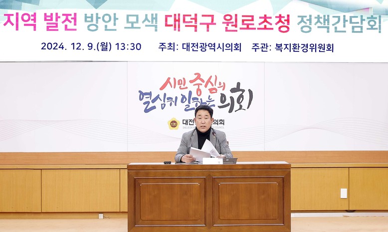 좌장을 맡은 이효성 의원은 “이 자리에 참석한 원로들은 대덕구 지역의 과거와 현재를 가장 깊이 이해하고 있는 분들로 지금의 자랑스러운 모습을 갖추는 데 결정적인 역할을 해왔다”며, “오늘 간담회를 통해 논의된 의견과 제안이 단순한 논의를 넘어 대덕구의 미래를 위한 실질적인 정책으로 이어질 수 있도록 최선을 다하겠다”고 대덕구 지역 발전에 대한 지원 의지를 밝혔다.