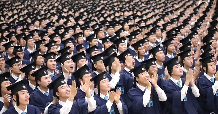 | ▲ 신천지예수교회 10만명 수료식에 참여한 청년들(출처=신천지공식유튜브 캡쳐) |