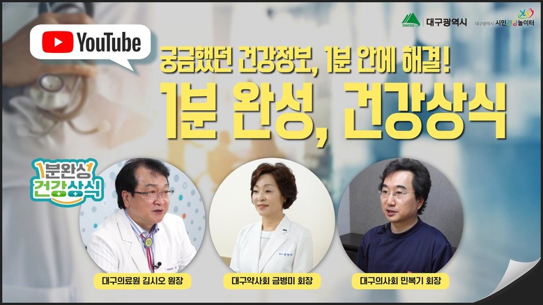 강연숙 대구광역시 건강증진과장은 “이번 ‘1분완성, 건강상식’은 바쁜 일상 속에서도 신뢰할 수 있는 건강 정보를 쉽고 빠르게 습득하실 수 있도록 기획한 사업”이라며, “시민건강놀이터는 앞으로도 시민 여러분의 건강관리 역량을 높일 수 있도록 다각적인 방식으로 함께 하겠다”고 말했다.