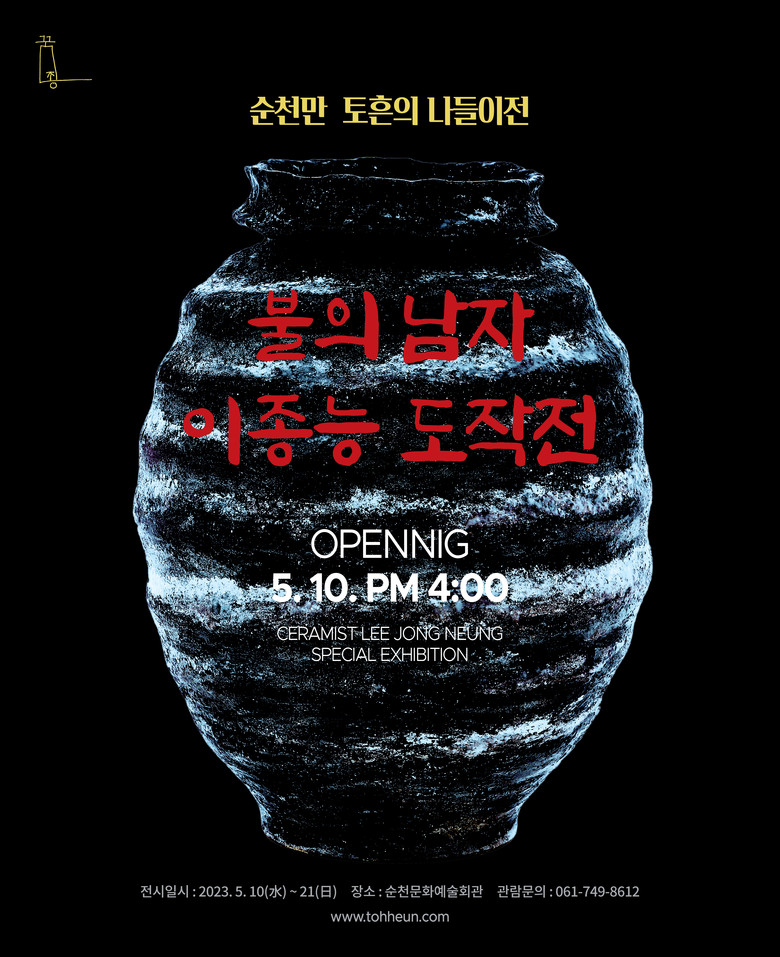 [세계타임즈 = 양준호 기자]한국 대표 도예 작가이면서 세계 도자사에 '토흔'이라는 새로운 장르를 개척한 지산 이종능 도예가(사진,65) 작품전 '순천만 나들이'가 오는 10일부터 21일까지 순천문예회관 전시실에서 열린다.