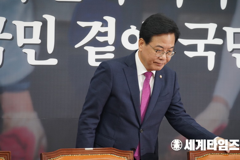 '송언석' 국민의힘 비상대책위원장 겸 원내대표가 28일 오전 서울 여의도 국회에서 열린 비상대책위원회의에 참석하고 있다.