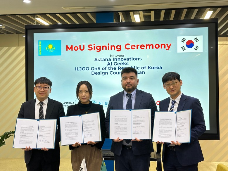 | ▲ AI Geeks·(재)부산디자인진흥원·아스타나 이노베이션·(주)일주지앤에스 업무협약 체결(왼쪽부터) |
