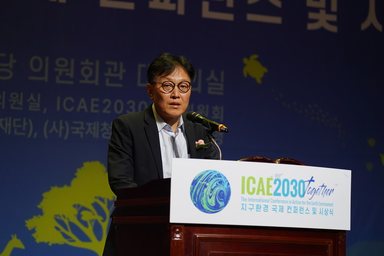 [세계타임즈 = 백진욱 기자] 심재환 ㈔국제청소년문화교류연맹 이사장이 31일 오후 서울 여의도 국회의원회관 대회의실에서 열린 'ICAE2030 Together 지구환경 국제 컨퍼런스 및 시상식'에서 개회선언을 하고 있다.