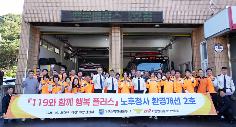 ▸ 대기실 벽지·장판 교체, 매립장 리폼 등 직원 복무여건 개선 [세계타임즈=대구 한윤석 기자] 대구소방안전본부(본부장 엄준욱)는 119시민안전봉사단연합회와 함께 추진하는 ‘119와 함께 행복플러스’(노후 소방청사 환경개선) 2호 사업을 완료하고, 10월 28일(화) 강북소방서 태전119안전센터에서 현판식을 가졌다.
