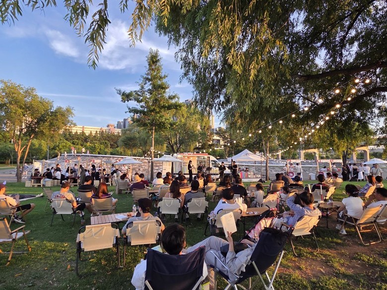 아울러 다양한 공연과 체험 프로그램도 진행됐다. 남녀 혼성 4인조 밴드 ‘오아’와 젊은 청년 색소폰 연주자들로 구성된 색소폰 앙상블 ‘블랭크’의 공연은 무더운 여름밤, 잠시나마 시원한 힐링의 시간을 선사했다. 또, 한강공원을 찾은 다양한 연령대의 주민들을 위해 시와 어울리는 무알콜 칵테일을 맛볼 수 있는 ‘Book & Drink’, 최근 넷플릭스 인기작 ‘케이팝 데몬 헌터스’에 등장하는 까치와 호랑이 등을 활용한 노리개 만들기, 책 속에 작은 정원을 꾸미는 책(꽃)갈피 만들기, 뜨개 키링만들기, 여행하는 서재 자동차 모형 만들기 등 다채로운 체험 프로그램도 운영됐다.