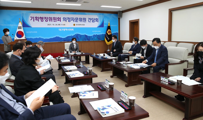 [대구=세계타임즈 한성국 기자] 대구광역시의회 기획행정위원회(위원장 윤영애)는 26일(화) 오전 11시 시의회 2층 간담회장에서 소관 의정자문위원과 소속 위원 등 15명이 참석한 가운데 의정자문위원 간담회를 진행하였다.