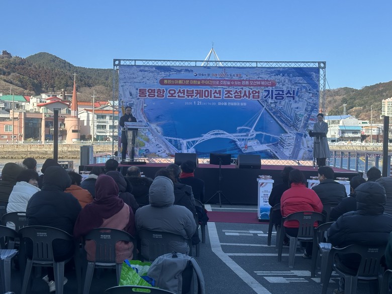 통영항 오션뷰케이션 조성사업은 ‘남부권 광역관광개발사업’의 일환으로 추진되는 ‘통영 관광만 구축’사업에 포함된다. 올해부터 2년간 통영시 도천동과 미수동 일원에 194억 원을 투입하여 보도교(L=128m), 스카이워크(L=130m), 익스트림 클라이밍(L=100m) 등을 설치하고, 통영항을 주·야간으로 조망할 수 있는 관광 인프라를 조성할 계획이다.