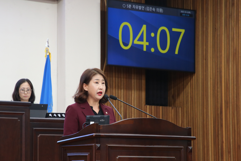 [남동구 세계타임즈=심하린 기자] 인천 남동구의회 김은숙 의원(국민의힘)이 12일 제289회 임시회 제1차 본회의에서 “남동구 주민자치센터 프로그램 강사수당 현실화 촉구”를 주제로 5분 자유발언을 했다.