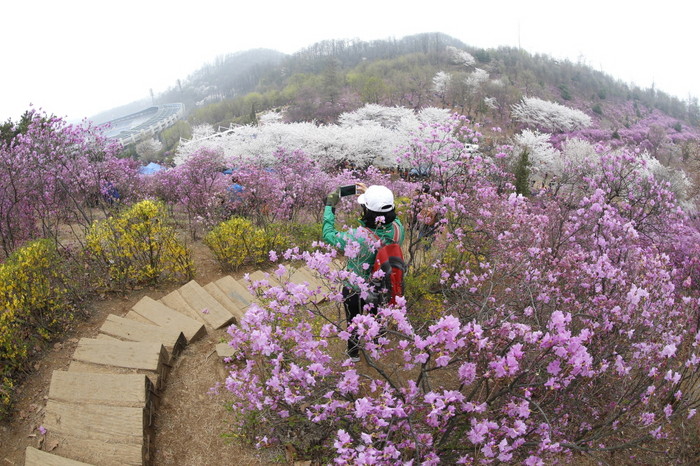 15만 그루의 진달래가 부천 원미산 자락을 분홍빛으로 물들인다. 4월 초 열리는 ‘원미산 진달래꽃 축제’는 강화도 고려산 진달래축제와 쌍벽을 이룰 만큼 수도권 최대의 진달래축제로 손꼽힌다. 축제 기간에는 시립합창단, 풍물패, 비보이 등과 지역주민들이 참여하는 다채로운 공연도 함께 진행된다. 부천은 원미산 진달래뿐만 아니라 도당산 벚꽃, 춘덕산 복숭아꽃도 유명하다. 진달래·벚꽃·복숭아꽃을 부천시 ‘3대 봄꽃’으로 부르며, 봄꽃 개화시기에 맞춰 매년 4월 초에서 중순 사이 3개의 봄꽃 축제가 열린다.