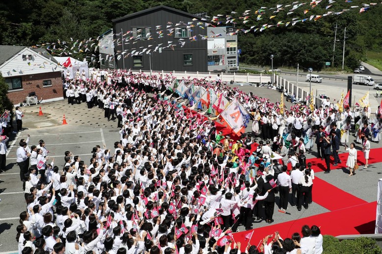 | ▲신천지예수교 증거장막성전(신천지예수교회) 이만희 총회장이 4일 빌립지파 강릉교회를 방문해 환영을 받고 있다. [사진 제공 = 신천지예수교회 빌립지파] |