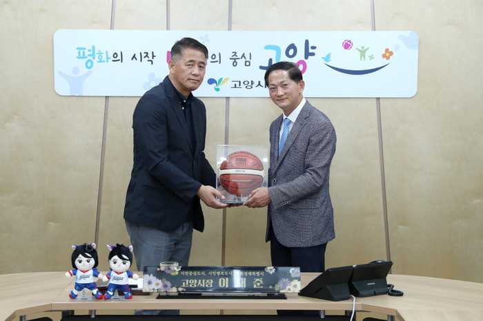 고양시(시장 이재준)는 지난 9월 27일 고양 오리온 프로농구단이 고양시청을 방문, 이재준 고양시장을 예방하고 오는 10월 5일 열리는 홈개막전에 대한 각오와 이번 시즌 선전을 다짐했다고 밝혔다.