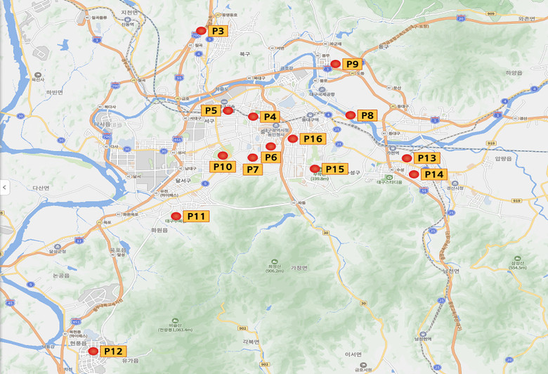 | ▲ 맨발 걷기길 토양오염도 검사 지점(대구시) |