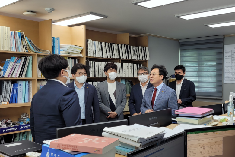 [강원도 세계타임즈=김민석 기자] 강원도의회 예산결산특별위원회강정호 위원장, 전찬성 부위원장은 9월 19일(월) 오후 3시 30분 강원도 예산과를 방문하여 내년도 당초예산편성에 여념이 없는 직원들을 격려하였다.