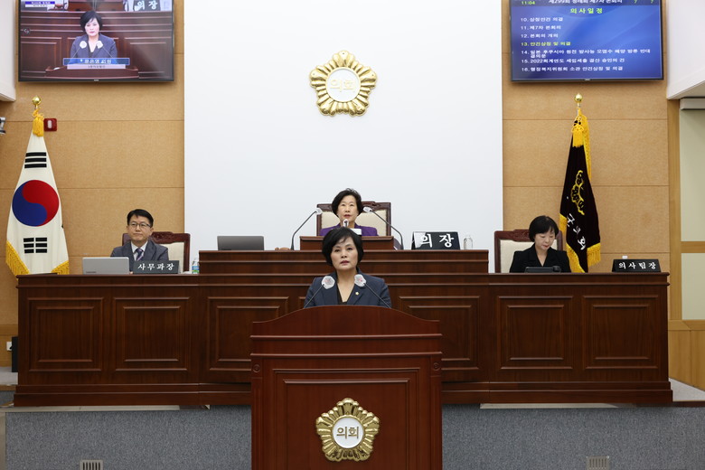도시재생사업의 성공적인 사업추진을 위한 대안으로 ▲주민이 중심이 되고 행정은 지원하는 민관협력 거버넌스 구축 ▲우리 군만의 지역적 특색을 살려 주민 정주환경과 지역상권 활성화 ▲사업 종료 후에도 자생력을 가지고 지속가능한 발전이 이루어지는 토대 마련 등을 제시한 문은영 의원은 다양한 수요층에 전략적으로 대응하는 특화된 ‘무주형 도시재생사업’ 추진을 당부하며 5분 발언을 마쳤다.